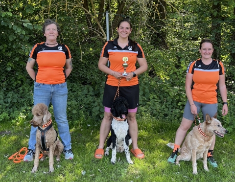 Silvia lief mit Otto den 2 km Geländelauf – wobei das Team trotz vorausgegangener Verletzungspause die Strecke in 10 Minuten schaffte. Damit sicherten sie sich den 3. Platz.