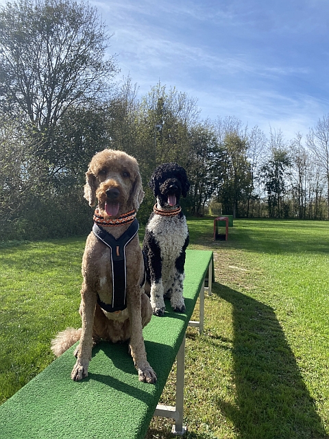 Anschließend mussten Eva und Loui ihre Disziplinen absolvieren. Der Slalom lief wieder Fehler frei. In der Unterordnung zeigte Loui zwar alle Elemente fehlerfrei, ihm fehlte aber ein bisschen an Spannung und Aufmerksamkeit. Somit gab es dafür 52 von 60 Punkte. Bei den Hürden war Loui kaum zu bremsen, sodass die Zeit zwar gut war, aber es zwei Fehler gab. Zu Evas grosser Freude war die Hindernissbahn erneut Fehlerfrei.
