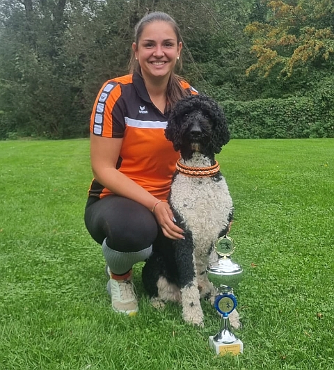 Diesmal ging es für die angeschlagene Eva (Erkältung + Knieschmerzen) & den fitten Loui nach Dachau. Dieses Mal wurde der Ablauf des Turniers umgedreht – erst alle Laufdisziplinen – danach die Unterordnung, wobei der langsamste Läufer die Erste und der schnellste Läufer die Letzte Unterordnung absolvieren musste. Angefangen wurde mit der Hindernisbahn – zwar fehlerfrei aber etwas langsamer wie sonst. Der Slalom war an sich gut – die Zeit war ok – aber Loui ist zu grosse Bögen gelaufen, sodass 4 Fehler kassiert wurden. Die Hürden waren zwar nicht richtig schnell aber dafür wirklich gut und fehlerfrei. Loui war voll konzentriert und kontrolliert. Eva war sehr zufrieden! Nach den Laufdisziplinen war Eva die zweit Schnellste und musste daher die vorletzte Unterordnung laufen. Dabei ist Loui top mitgelaufen – konnte aber wieder kein gutes ?Steh? zeigen. Das kommt auf die der Training To Do – Liste f?r den Winter. Es gab 52 von 60 Punkten. Am Ende blieb der 1. Platz der Gästewertung über. Dabei werden alle Starter von den Gästevereinen rein nach den Punkten platziert.